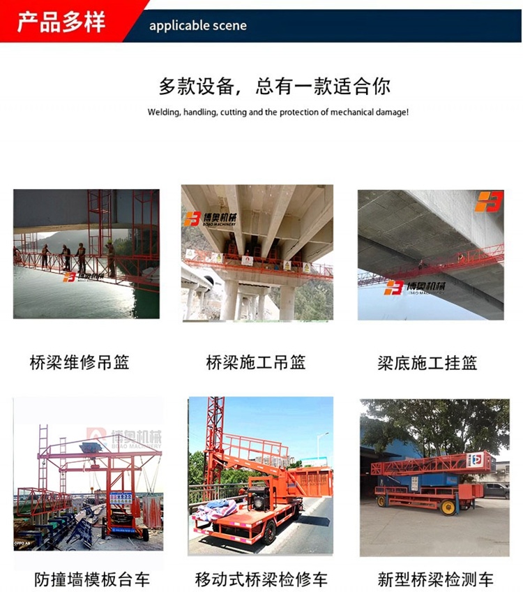 我(wǒ)們公司與中交(jiāo)、中鐵、中建等大(da)型企業單位建(jian)立長期友好的(de)合作關系;積累(lei)了許許多多的(de)标杆項目工程(cheng);這也充分展示(shì)了我公司具備(bèi)很大的實力和(hé)技術;一分錢一(yi)分貨,我們秉承(chéng)産品品質與服(fú)務至上的宗旨(zhǐ),不斷提高産品(pin)和服務質量。市(shì)面上出現雷同(tóng)的産品,爲了保(bao)護廣大用戶的(de)合法權益,請大(dà)家認真辨識,選(xuǎn)購正品,安全高(gao)效施工。強烈推(tui)薦公司産品:橋(qiao)梁排水管安裝(zhuāng)設備、單邊橋梁(liang)檢測車、防撞牆(qiang)模闆台車、橋梁(liáng)施工吊籃、固定(dìng)式橋梁檢查小(xiǎo)車。