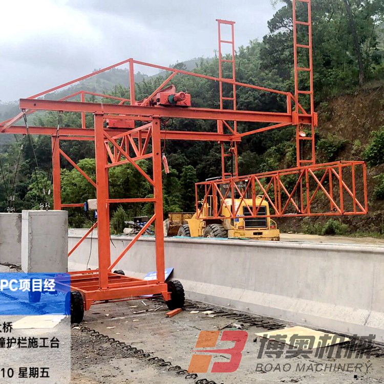 防撞護欄闆台(tai)車是近三年市面(mian)上新興的橋梁模(mo)👈闆拆裝設備,模闆(pǎn)台車的設計爲了(le)解決高速公路混(hùn)凝土防撞牆施工(gong)難,高空作業危險(xian),人員采取裝👉載機(jī)加吊籃的✊形式,把(bǎ)💋人員挂在外側懸(xuán)空,裝載機升降左(zuo)右挪動不方便,安(ān)全隐患較大,中鐵(tie)集團以⭕安全施工(gōng)、科技施工爲導向(xiàng),保證工程進度的(de)同時,給予工程人(rén)更多的保護。