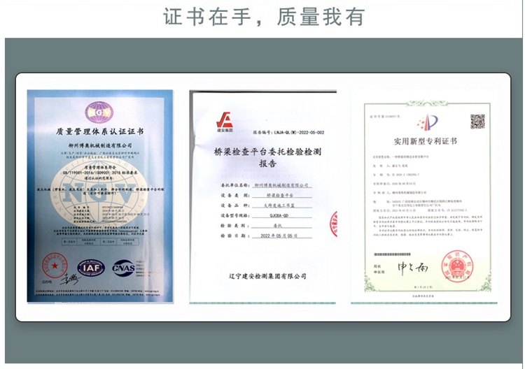 我們公(gong)司與中(zhōng)交、中鐵(tiě)、中建等(deng)大型企(qi)業單位(wei)建立長(zhǎng)期友好(hao)的合作(zuo)關系;積(ji)累了許(xu)許多多(duo)的标杆(gan)項目工(gōng)程;這也(ye)充分展(zhǎn)示了我(wo)公司具(jù)備很大(da)的實力(li)和技術(shu);一分錢(qián)一分貨(huò),我們秉(bǐng)承産品(pǐn)品質與(yu)服務至(zhi)上的宗(zong)旨,不斷(duàn)提高産(chǎn)品和服(fú)務質量(liang)。市面上(shang)出現雷(léi)同的産(chan)品,爲了(le)保護廣(guǎng)大用戶(hù)的合法(fa)權益,請(qing)大家認(ren)真辨識(shi),選購正(zheng)品,安全(quan)高效施(shī)工。強烈(lie)推薦公(gong)司産品(pin):橋梁排(pai)水管安(ān)裝設備(bei)、單邊橋(qiáo)梁檢測(cè)車、防撞(zhuàng)牆模闆(pan)台車、橋(qiao)梁施工(gong)吊籃、固(gu)定式橋(qiáo)梁檢查(cha)小車。