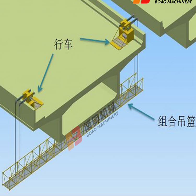 實用的橋(qiáo)梁塗裝施工吊籃(lán)設備行走系統在(zai)鋪設👄好的導軌上(shang)👅前後行走,根據不(bú)同類型的橋梁來(lái)設計專⛷️用的施工(gong)吊籃,可以沿着道(dao)路前進,同時設備(bei)可以對橋墩垂⚽直(zhi)方向的水管進行(hang)往下安裝,過墩時(shí)通過下部分回轉(zhuǎn)支撐旋轉90度使車(che)體垂直于橋墩,利(li)用蓋梁與橋面的(de)空間通過橋墩。