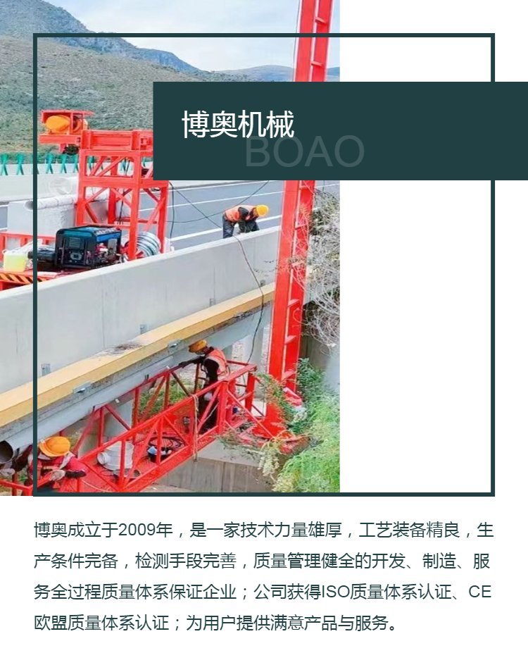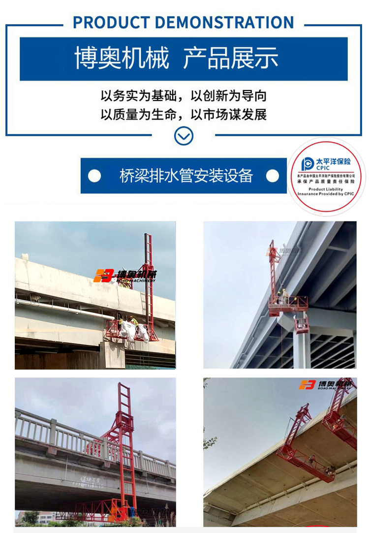 如今橋(qiao)梁交通日(rì)益發達,橋(qiao)梁建設工(gong)程項目也(yě)越來越多(duō)。橋梁檢修(xiū)、橋梁側邊(bian)排水管安(an)裝、橋梁塗(tú)裝等工作(zuo)必不可少(shǎo)。傳統的橋(qiao)梁排水管(guǎn)安裝方法(fǎ)一般都是(shi)租賃大型(xíng)的橋梁檢(jiǎn)測車的方(fāng)式,租賃設(she)備的單價(jià)是4500~6500元每天(tiān),單月使用(yòng)的成本超(chāo)過了9萬元(yuán),這🎯個成本(ben)比較高,施(shī)工隊的💘負(fu)擔很大。當(dāng)前的排水(shui)管㊙️安裝費(fei)用并不高(gāo),一般安裝(zhuang)160mm的PVC排水管(guan)的單價❤️是(shì)35~45元每米,勞(láo)動成本過(guo)高的情況(kuàng)下利潤相(xiang)對比較低(di)。常規的橋(qiáo)梁排水管(guan)安裝規格(gé)是150mm、160mm、200mm、250mm、300mm、400mm等PVC水管(guǎn)⛷️的規格。