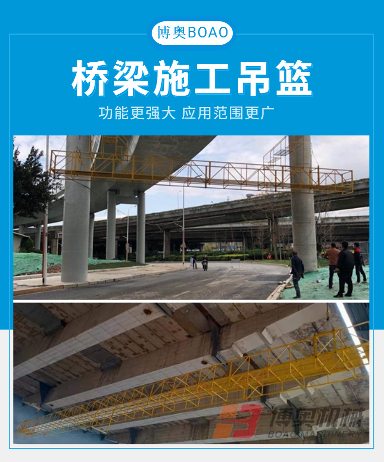 大跨度橋梁施工(gong)吊籃平台由行走(zou)系統和模塊吊籃(lán)♋兩部分組成。行車(chē)在運行時不影響(xiǎng)橋梁交通。重量低(di)㊙️于3噸⚽,吊籃可進行(hang)組🏃♀️合,長可組成40米(mi)長的操作平台。由(yóu)行車帶動,整套設(she)備由無線遙❗控控(kòng)制,可水平也可上(shàng)💛下垂直移動,操作(zuo)簡單。