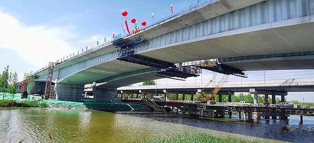 04 京台高速德(de)州至齊河段改(gai)擴建項目減河(he)特大橋左幅順(shùn)利🔴合龍